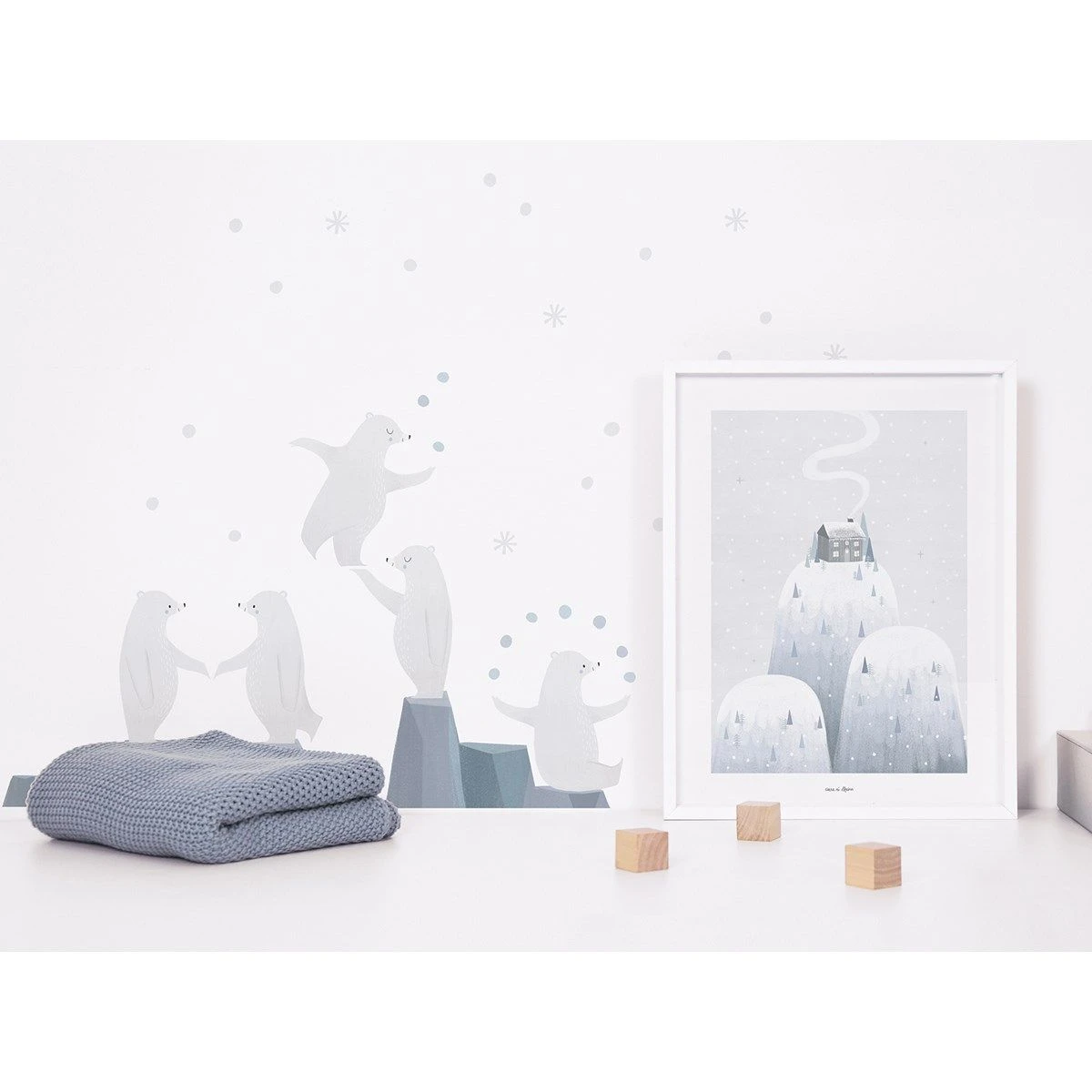 Affiche village enneigé ARTIC DREAM Couleur bleu LILIPINSO