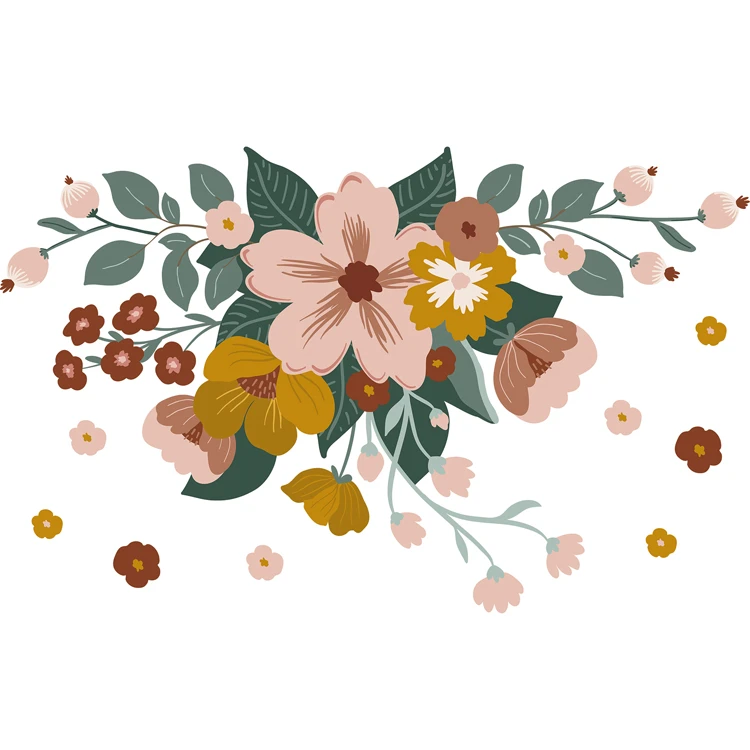 Grand Sticker Composition De Fleurs En Vinyle Mat Multicolore