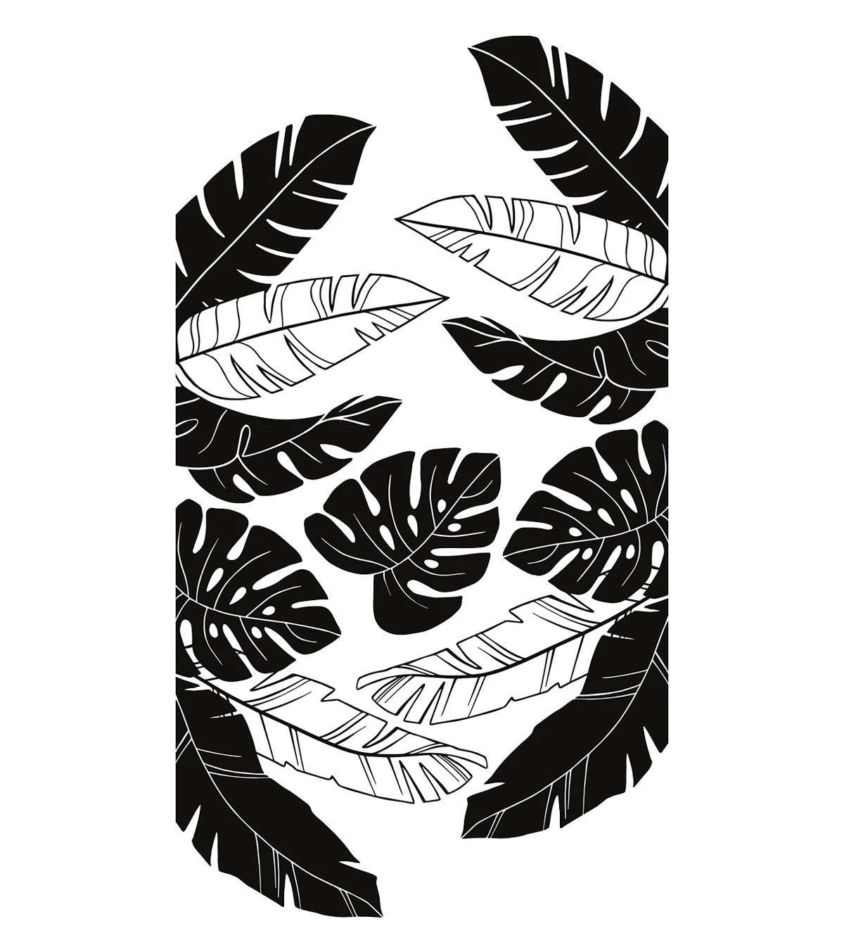 Grand Sticker Feuilles Tropicales En Vinyle Mat Noir
