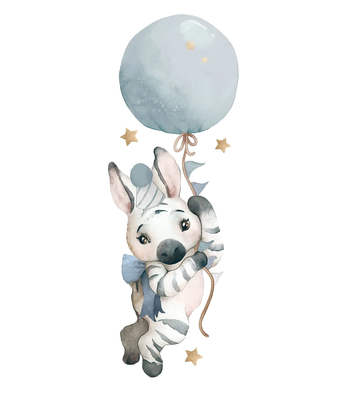 Grand Sticker Le Zèbre Et Son Ballon En Vinyle Mat Bleu