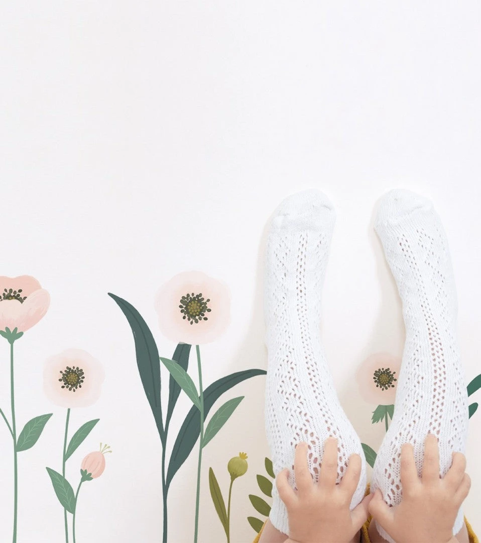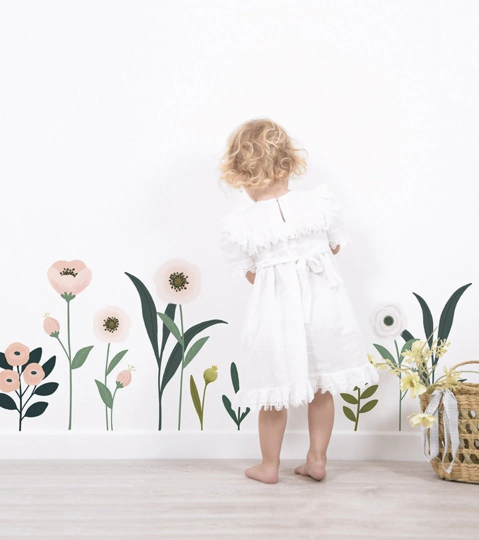 Découvrez ce sticker Wonderland, composé de fleurs d’anémone. Il est en vinyle mat avec blanc de soutien, qui permet à votre sticker de ne pas être transparent. Vous pourrez donc poser le sticker sur un mur de couleur sans altérer la couleur du sticker.