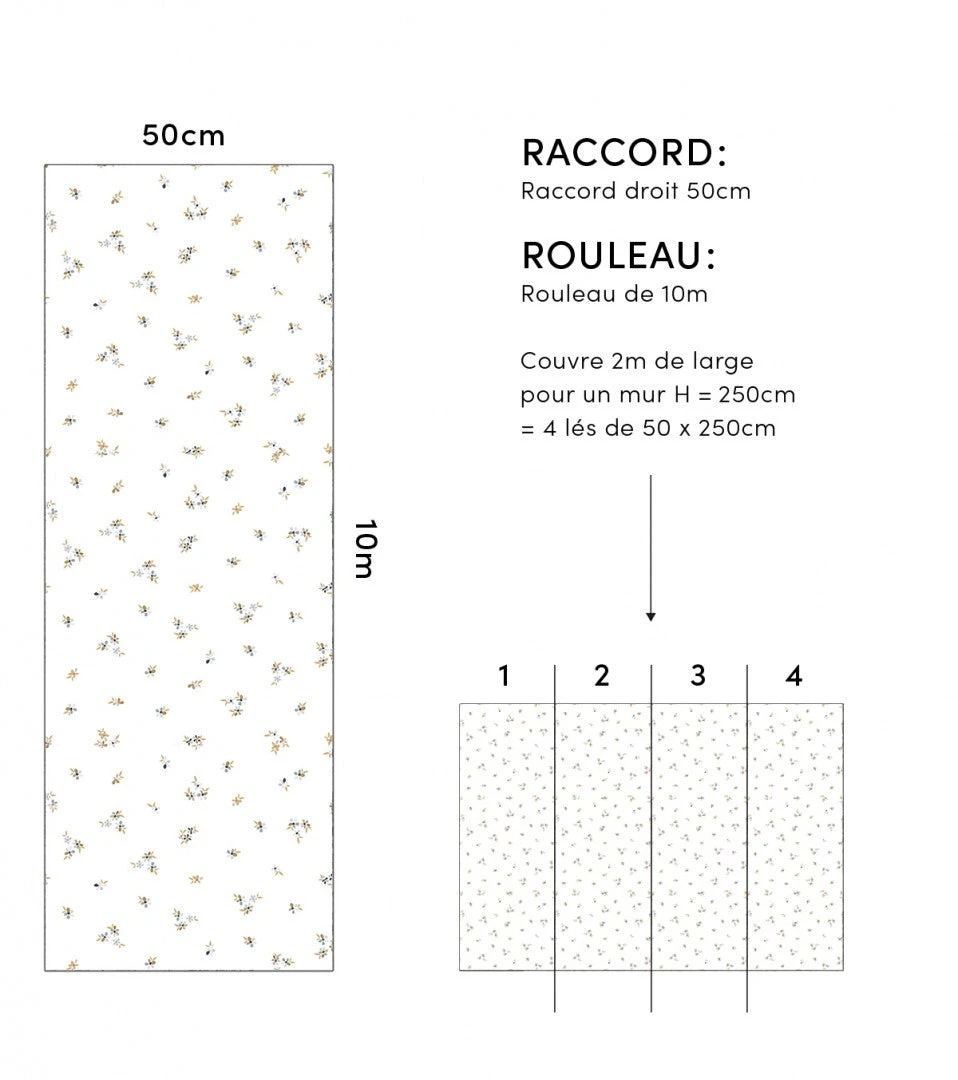 Ce produit est composé de 2 rouleaux : Chaque rouleau contient 4 panneaux de 50 x 248 cm à assembler ensemble (panneau 1 à 4)