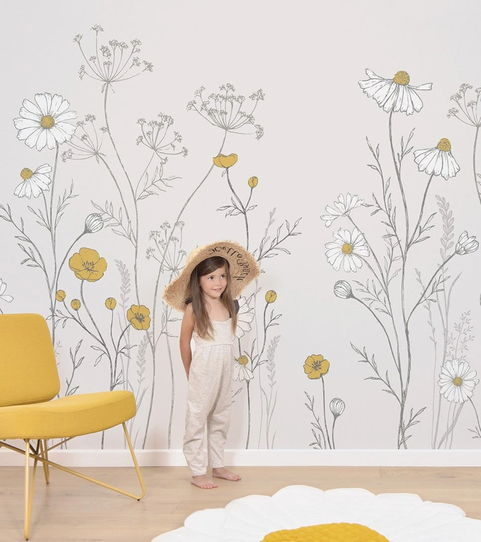 Découvrez les papiers peints Lilipinso ! Le Chamomille est parfait pour une ambiance printemps dans la chambre des filles comme des garçons.