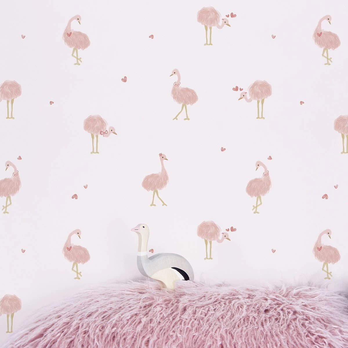 Papier Peint Coeurs Et Autruches En Papier Rose 50cm X 10m
