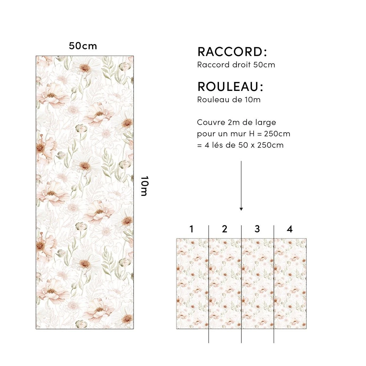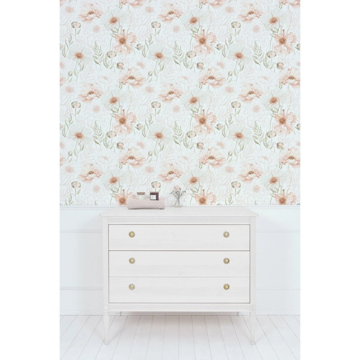 Papier peint enfant motif coquelicots POPPIES Couleur rose LILIPINSO