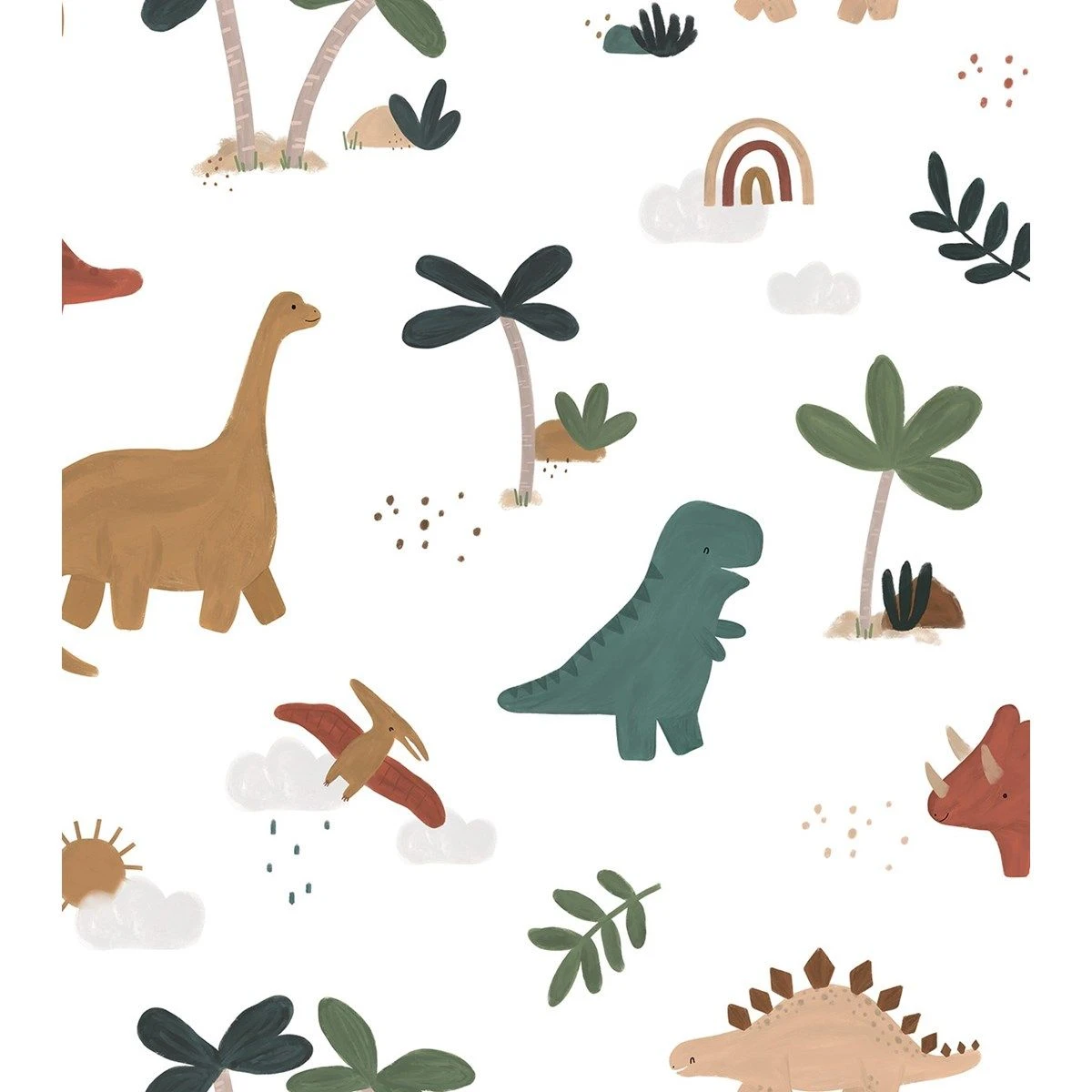 Papier peint enfant motif dinosaures SUNNY Couleur blanc LILIPINSO