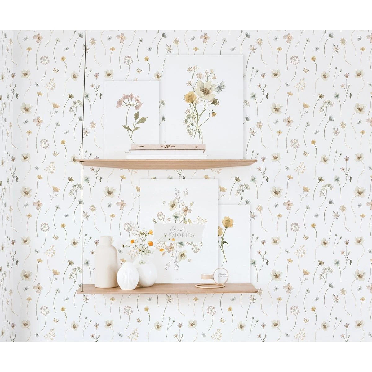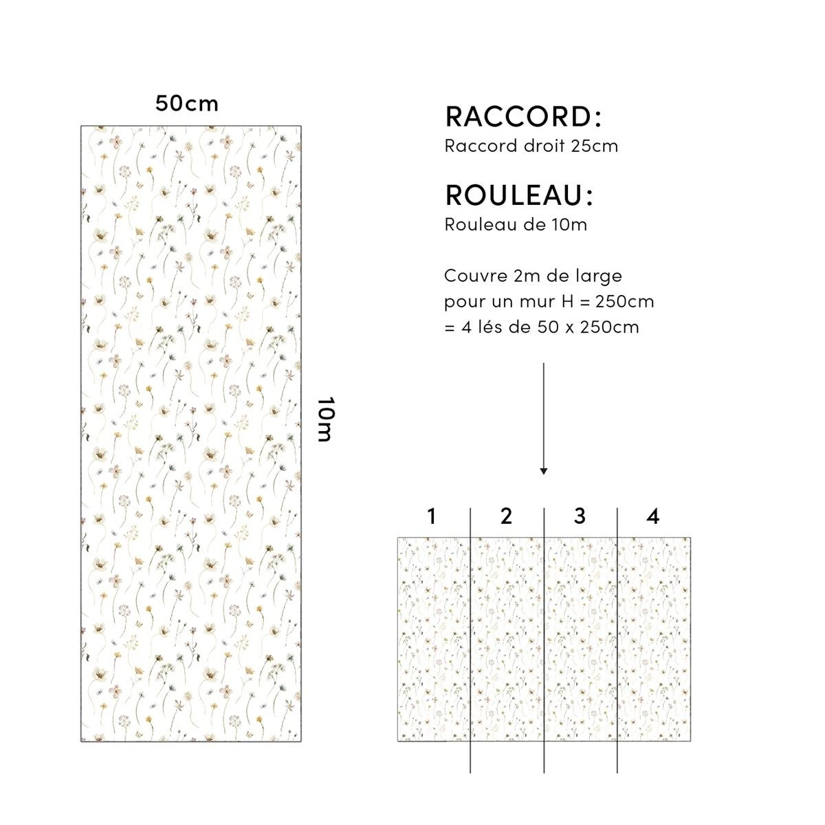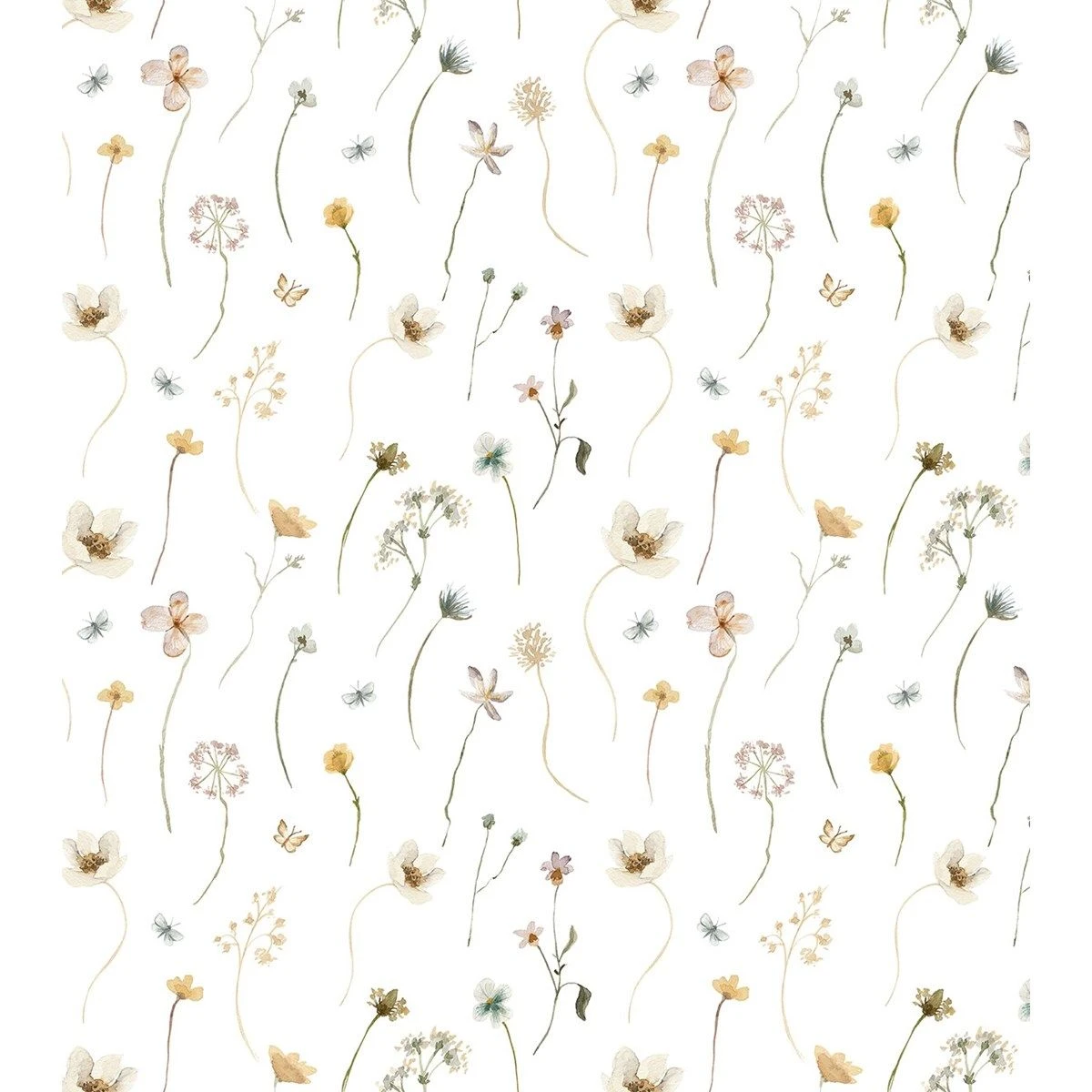 Papier peint enfant motif fleurs de mai MADEMOISELLE Couleur blanc LILIPINSO