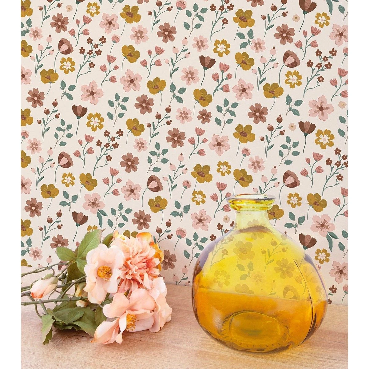 Papier peint enfant motif fleurs sur tige CAPUCINE Couleur multicolore LILIPINSO
