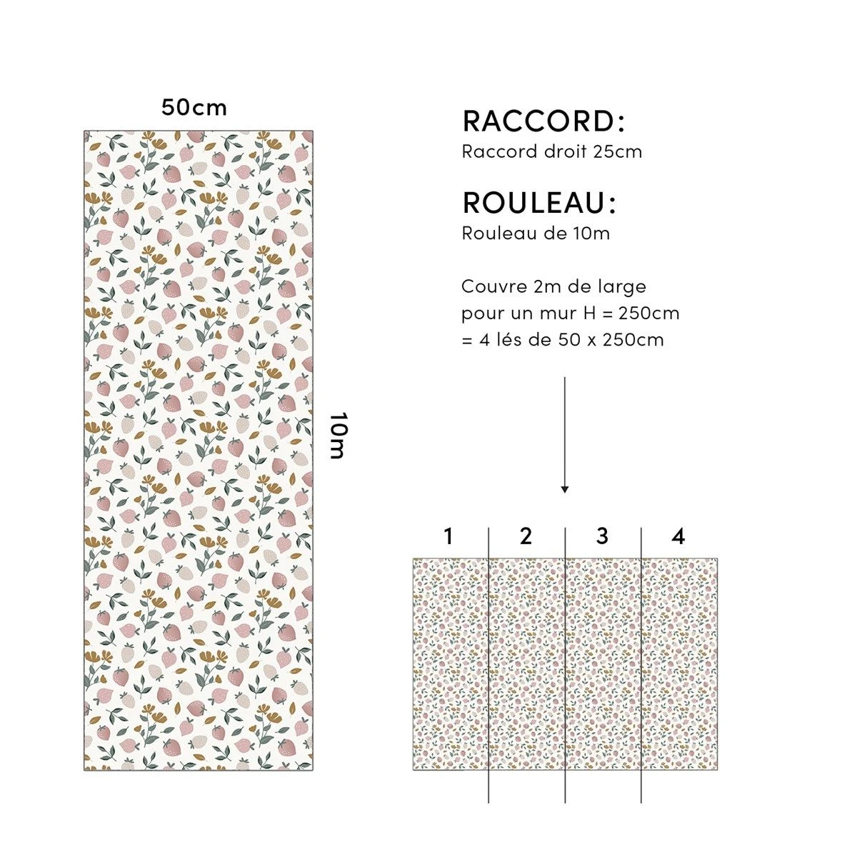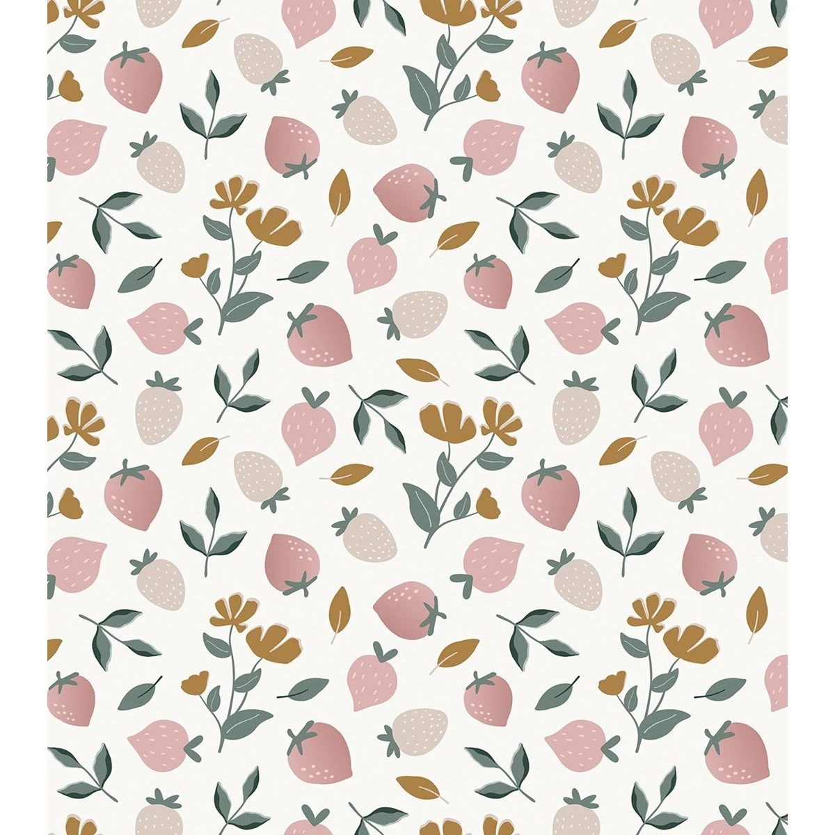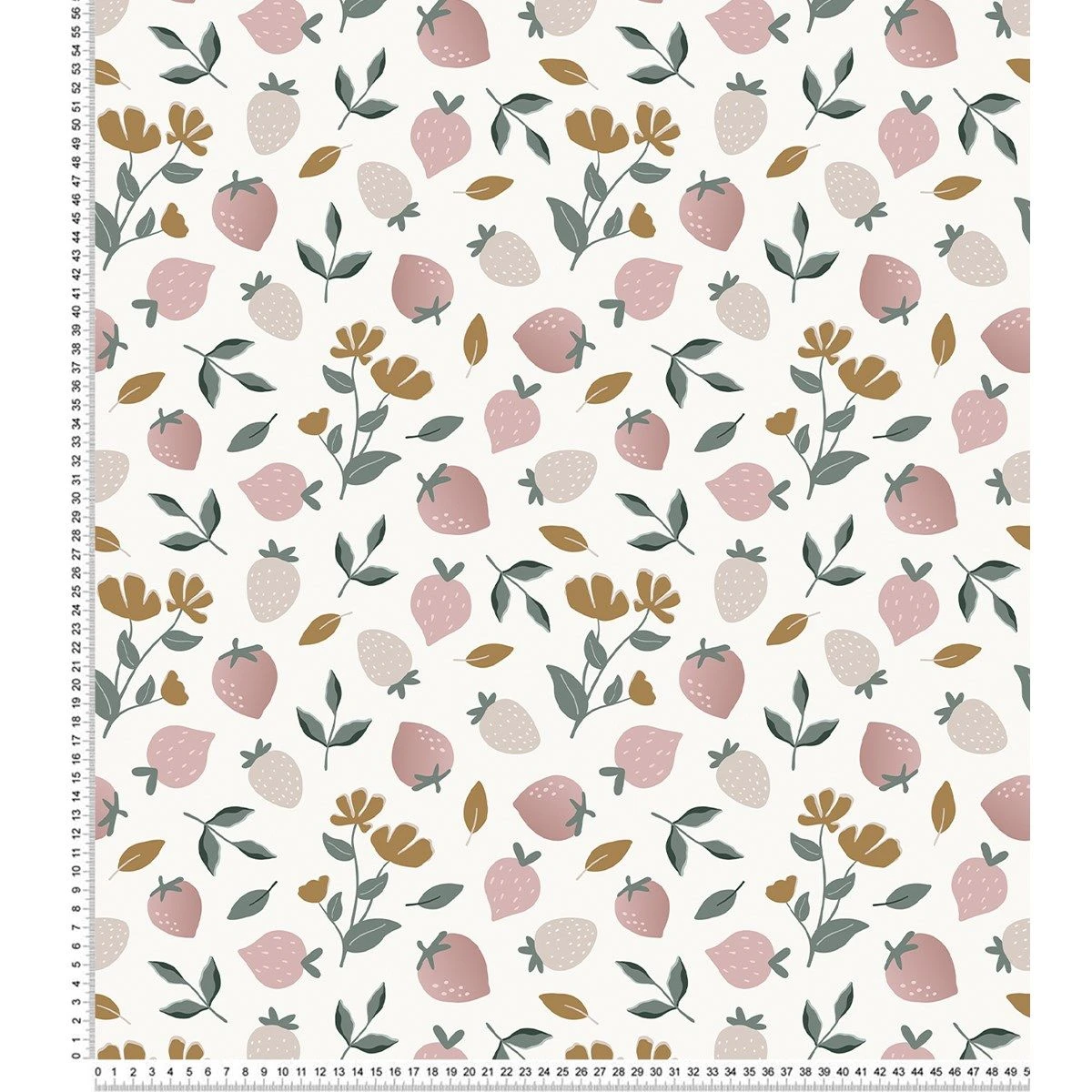 Papier peint enfant motif fraises LOUISE Couleur blanc LILIPINSO