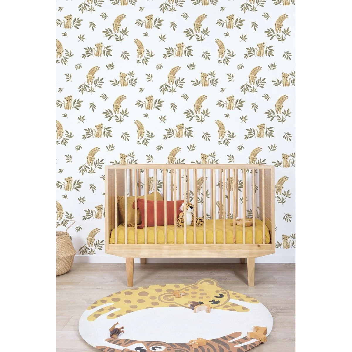Papier peint enfant motif petit léopard FELIDAE Couleur blanc LILIPINSO