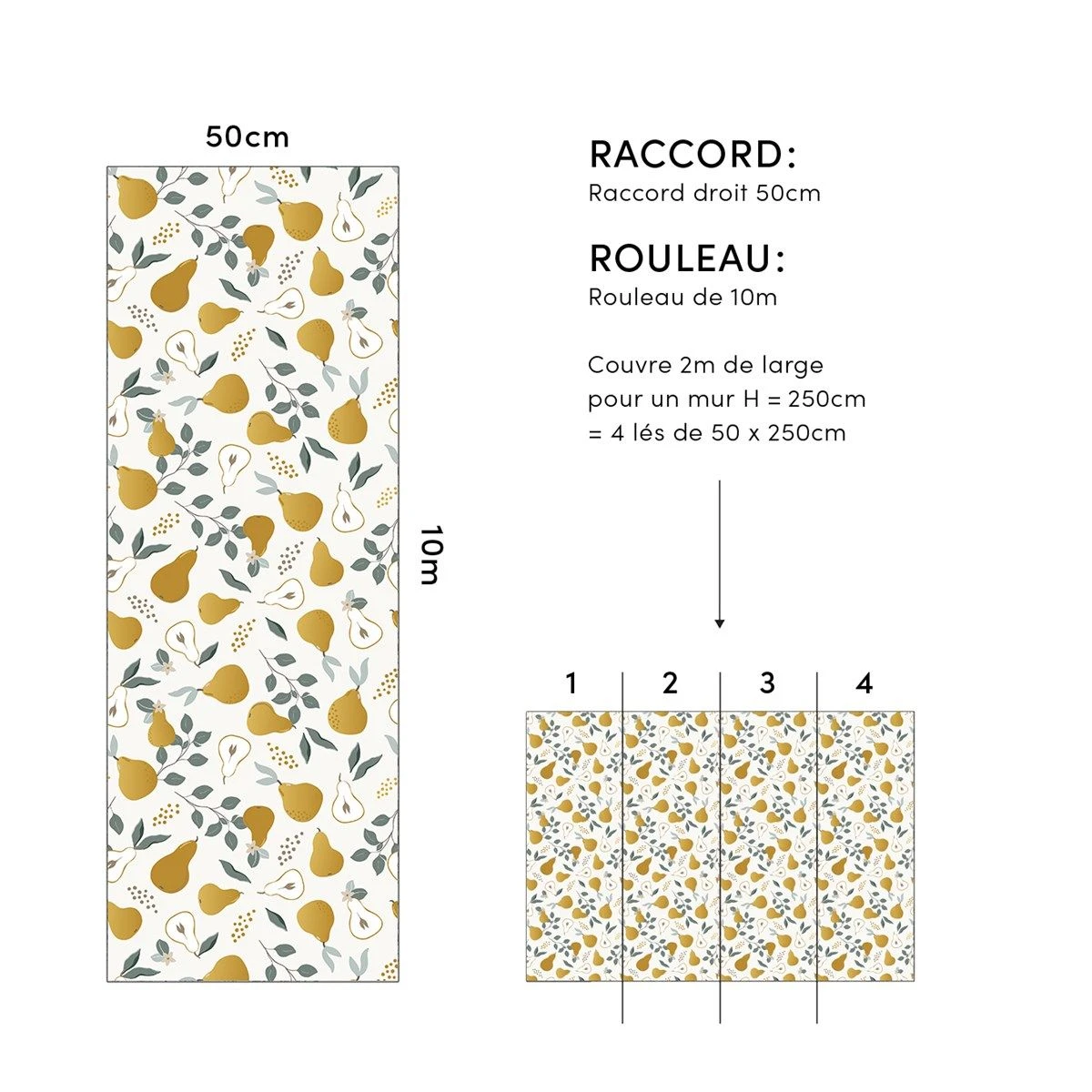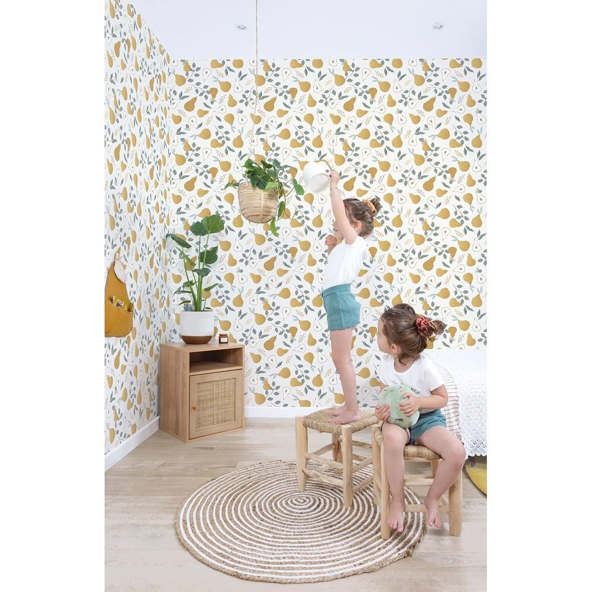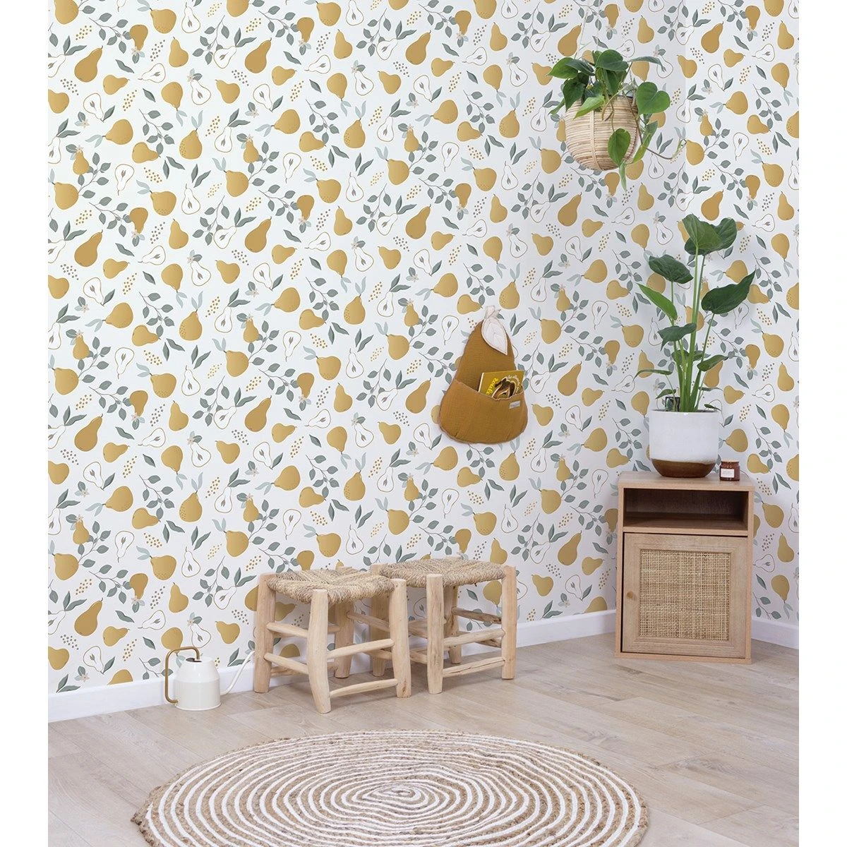 Papier peint enfant motif poires LOUISE Couleur blanc LILIPINSO