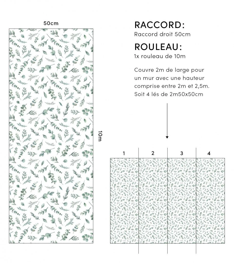 Le calcul du nombre de rouleaux varie en fonction du papier peint choisi et de son type raccord (droit ou sauté), c’est-à-dire lorsque les motifs se chevauchant d’un lé sur l’autre.