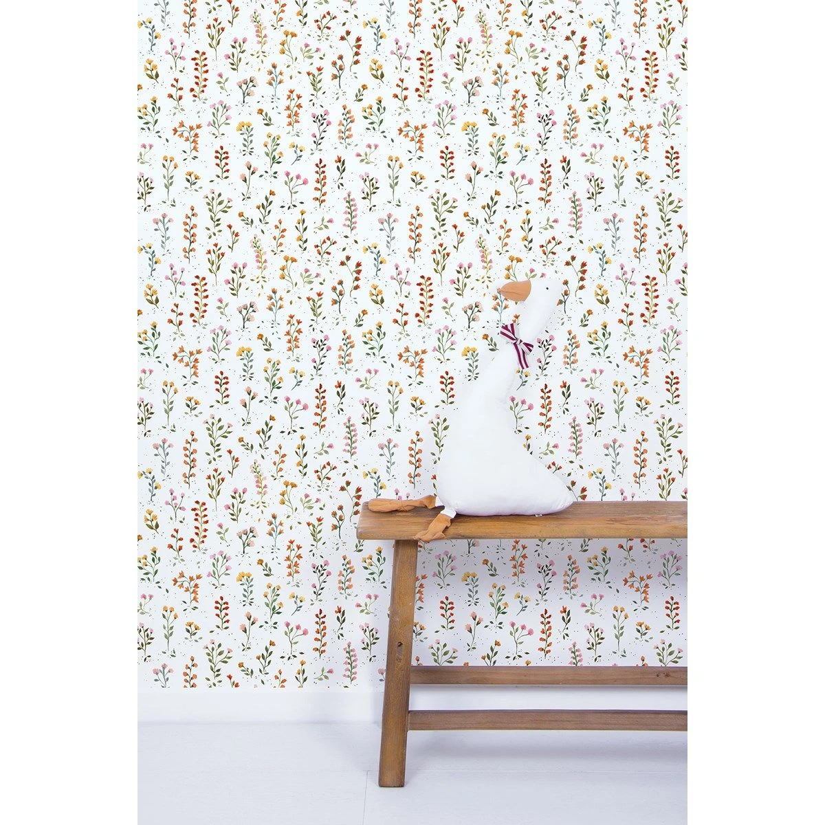 Papier peint intissé fleurs QUEYRAN Couleur blanc LILIPINSO