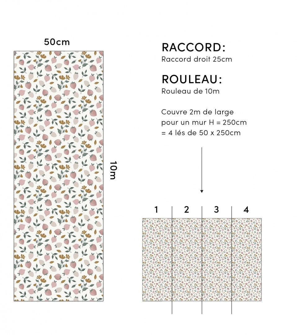 - 1 rouleau = 4 lés de 50cm x 2,48m à assembler