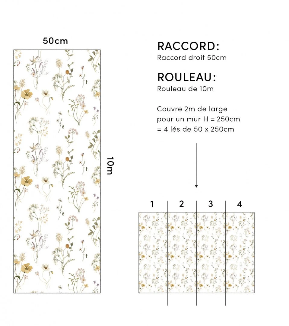 Ce produit est composé de 2 rouleaux : Chaque rouleau contient 4 panneaux de 50 x 248 cm à assembler ensemble (panneau 1 à 4)