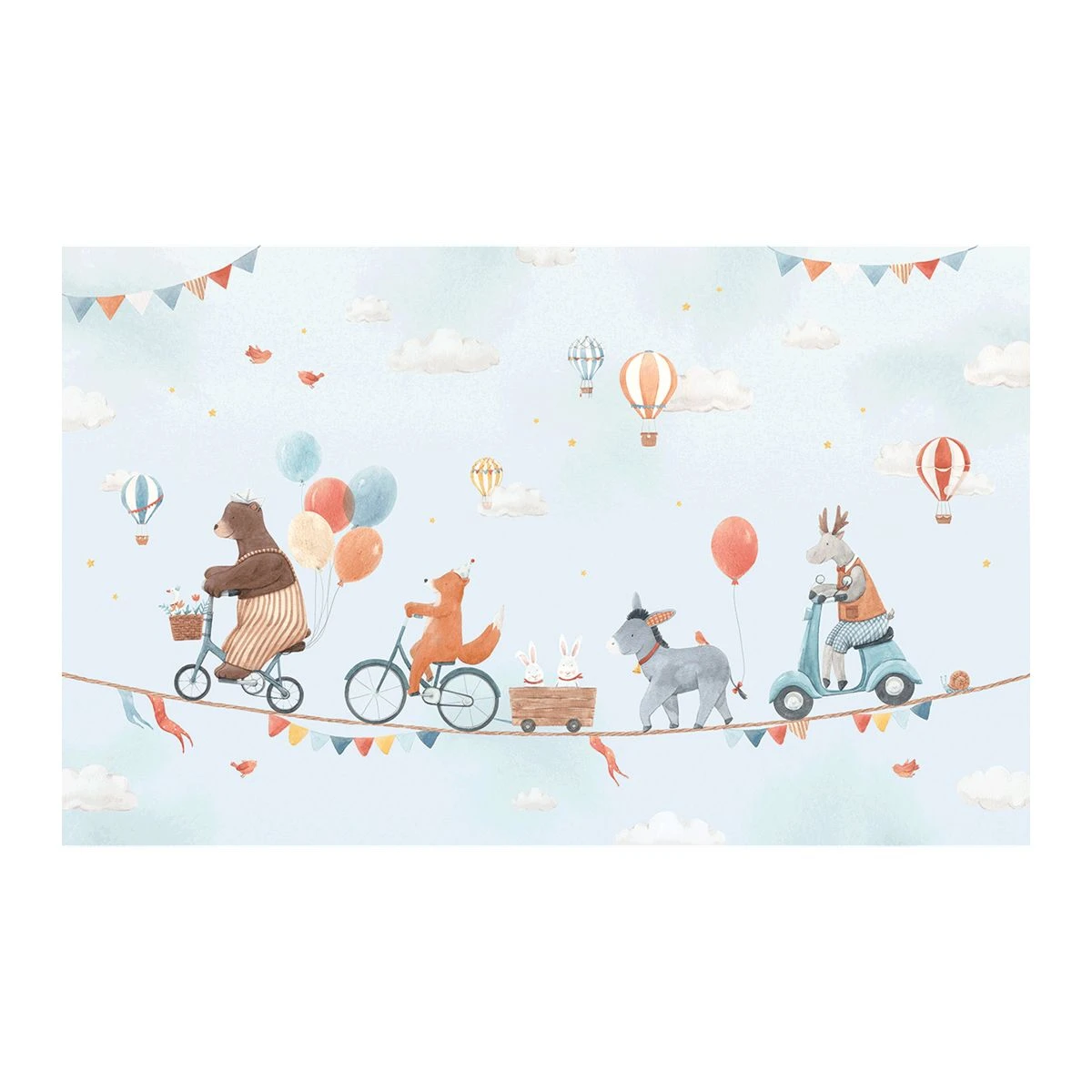 Papier peint panoramique animaux et ballons GENTLE FRIENDS Couleur bleu LILIPINSO