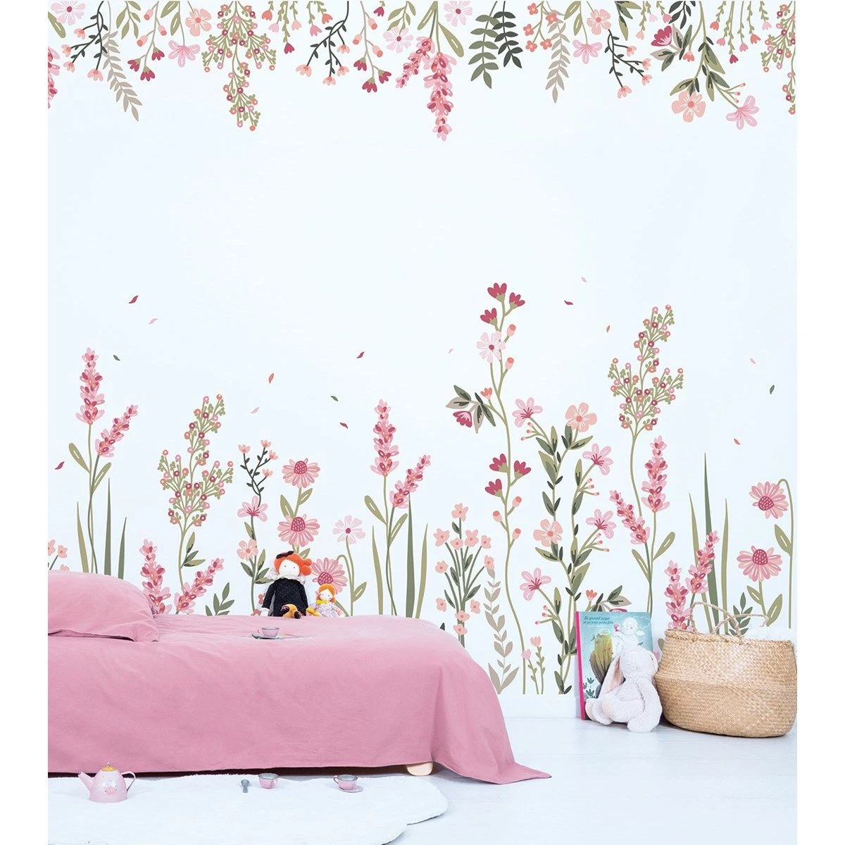 Papier peint panoramique champs de fleurs rose MAGENTA Couleur multicolore LILIPINSO