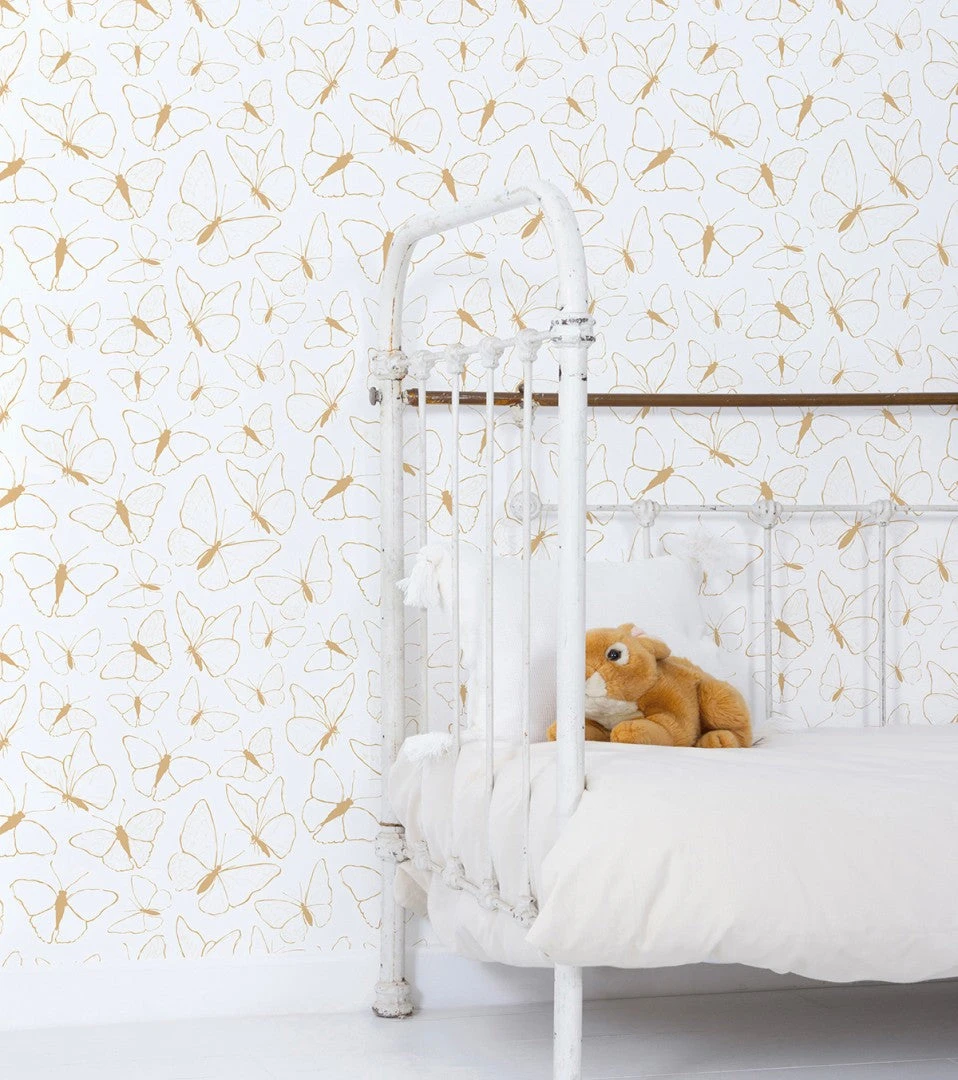 Découvrez les papiers peints Lilipinso ! Décorez la chambre de votre enfant avec le motif papillons de la collection Picnic Day.