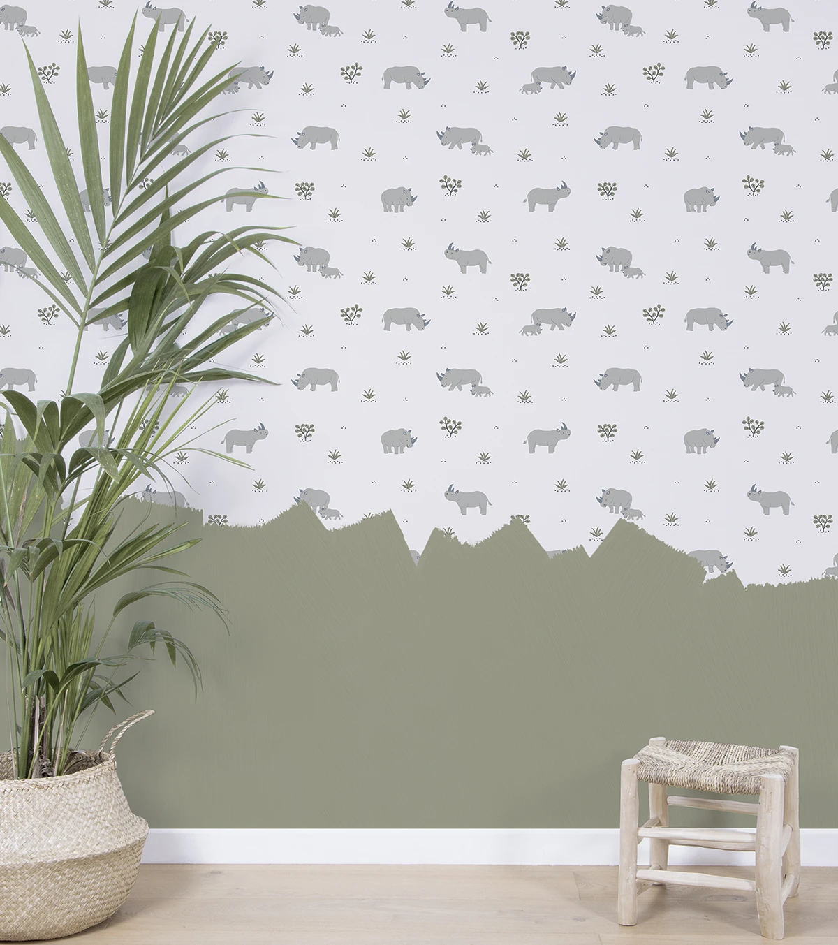 Papier peint rhinocéros Optez pour le rhinocérosLe papier peint peut embellir le mur de plusieurs façons selon vos envies ou vos projets de décoration. Ici, la base du mur est peinte et le mur réalisé avec du papier peint rhinocéros dans des tons de gris et de bleu. Papier peint intissé, l’intissé est un matériau haut de gamme à mi-chemin entre le papier et le tissu. Se pose avec de la colle pour intissé, à appliquer sur le mur. Votre besoin en papier peint Dimension rouleau : l.50cm (largeur) L.10m (longueur). Raccord dans la hauteur : raccord droit 40 cm À savoir Important, mieux vaut bien calculer votre besoin et prévoir 10% de +. Vos commandes sont imprimées sur mesure afin d’éviter qu’il n’y ait pas de différence de bain. C’est-à-dire une légère variation de teinte entre les lés. Papiers peints édités à la commande. Informations produitMatière : papier peint intissé,Fourni avec conseils de pose,Fabriqué en France,Euroclass B,Certification A+.