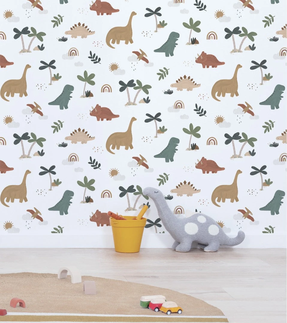 Découvrez les papiers peints Lilipinso avec Sunny, ses dinosaures et ses arcs-en-ciel.