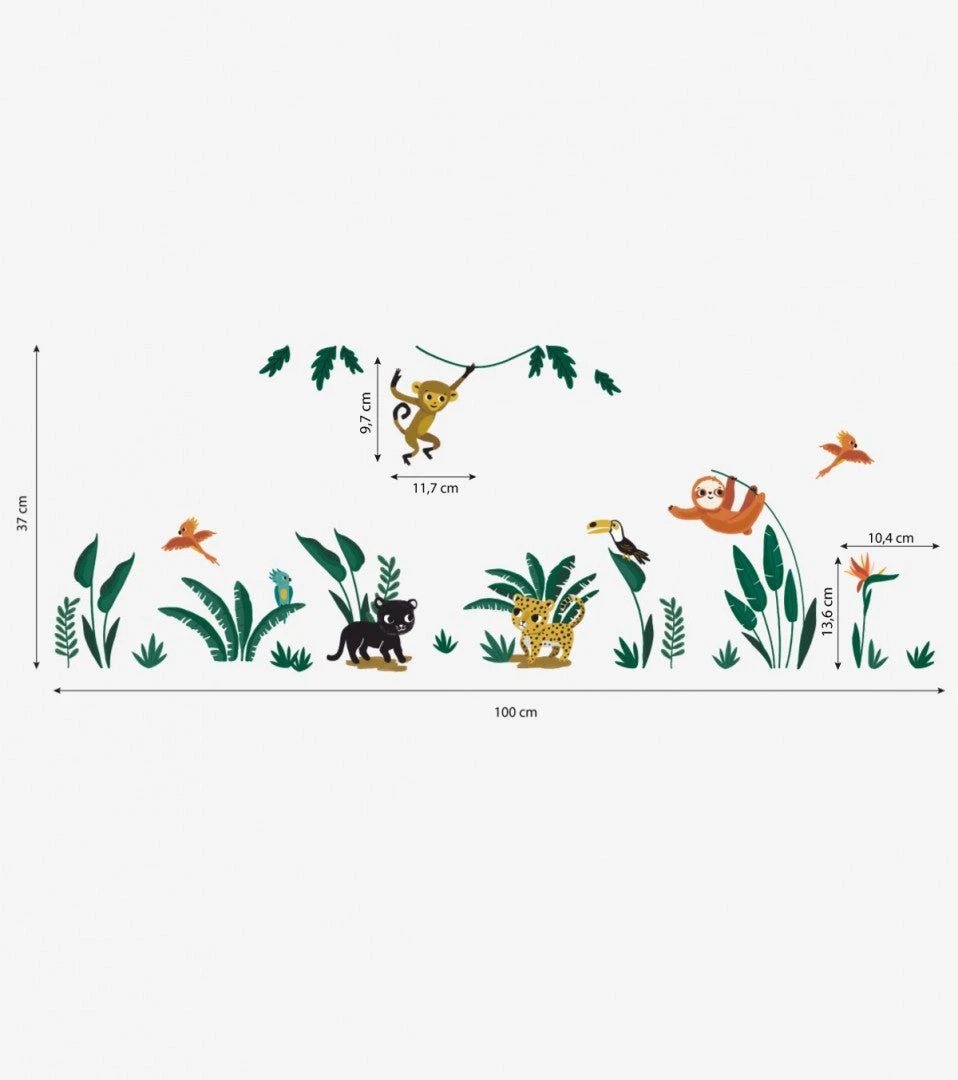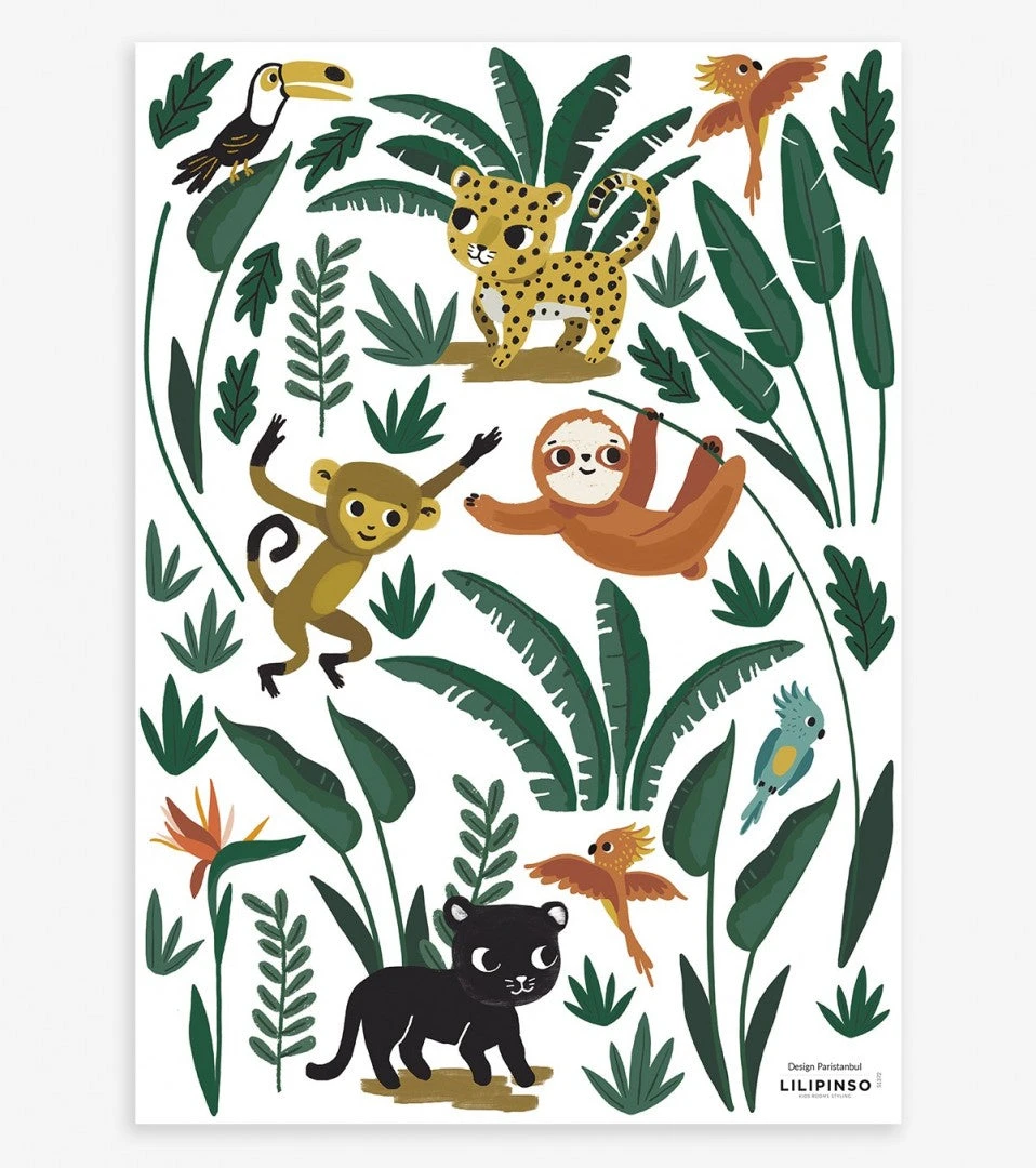 Découvrez les stickers muraux Jungle Night. Ils sont en vinyle mat avec blanc de soutien, qui permet à votre sticker de ne pas être transparent. Vous pourrez donc poser le sticker sur un mur de couleur sans altérer la couleur du sticker.