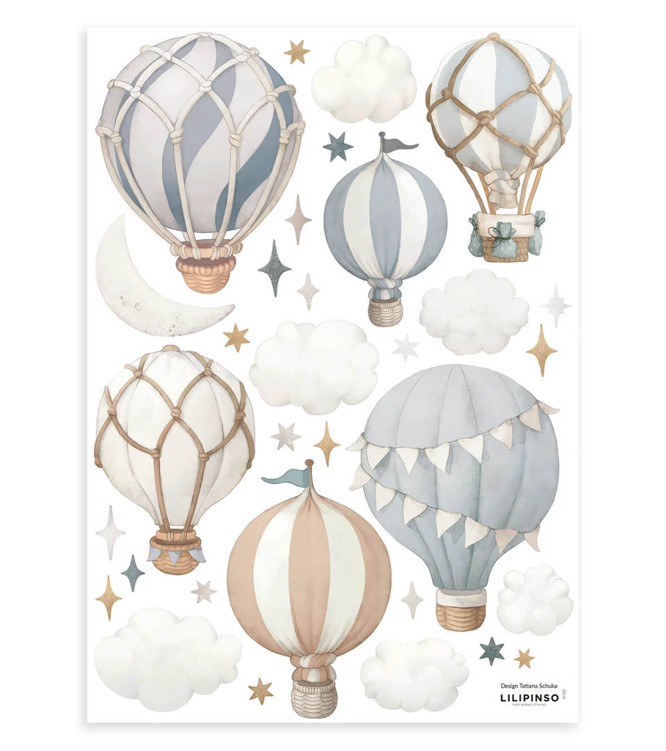 Découvrez les stickers muraux Selene avec ses montgolfières. Ils sont en vinyle mat avec blanc de soutien, qui permet à votre sticker de ne pas être transparent. Vous pourrez donc poser le sticker sur un mur de couleur sans altérer la couleur du sticker.