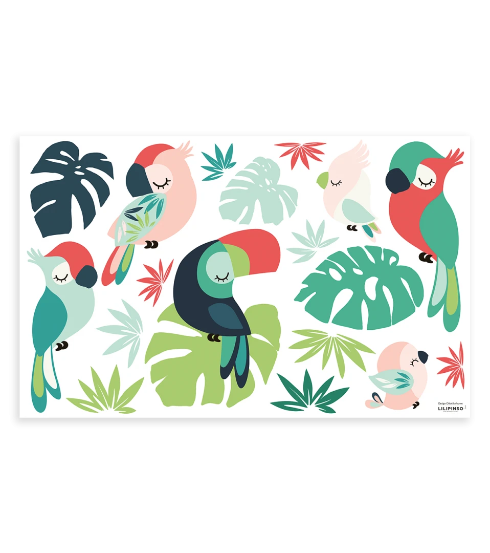 Découvrez cette planche de sticker Tropica. Il est en vinyle mat avec blanc de soutien, qui permet à votre sticker de ne pas être transparent. Vous pourrez donc poser le sticker sur un mur de couleur sans altérer la couleur du sticker.