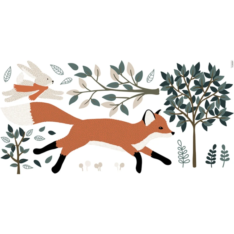Sticker Décor Forêt, Renard Et Lapin En Vinyle Mat Orange 64×130 Cm