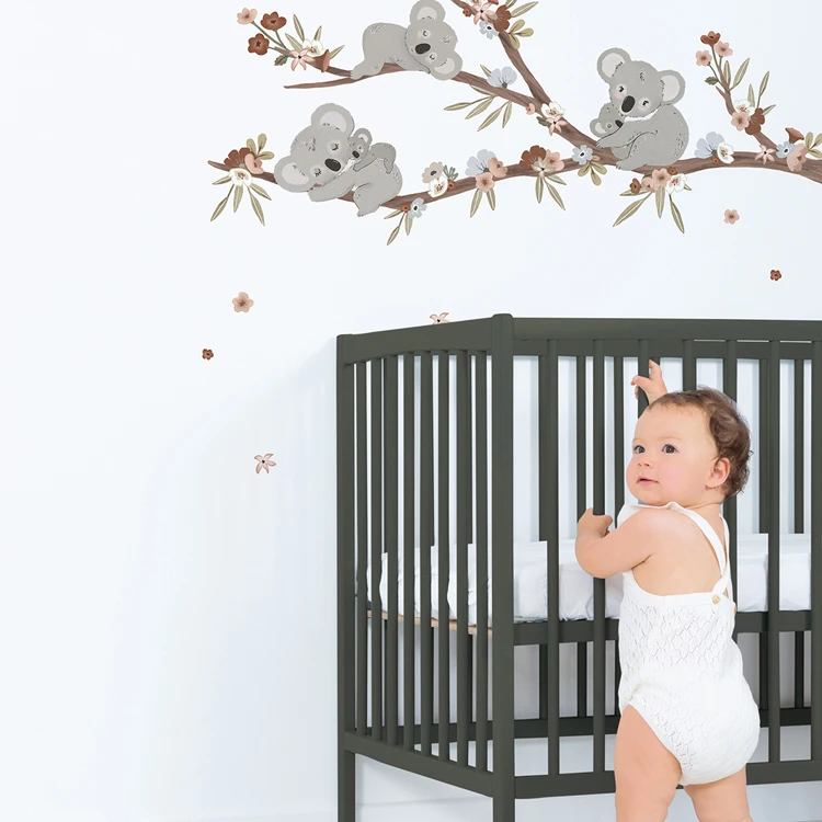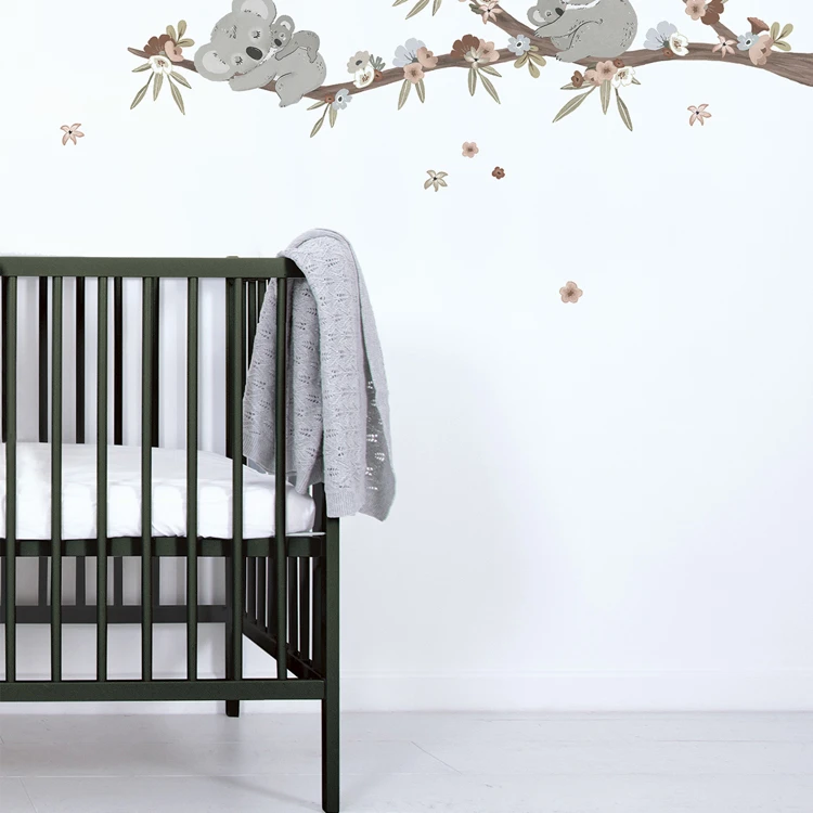 Sticker Mural Koalas Sur Branche Avec Fleurs (118 X 54 Cm)