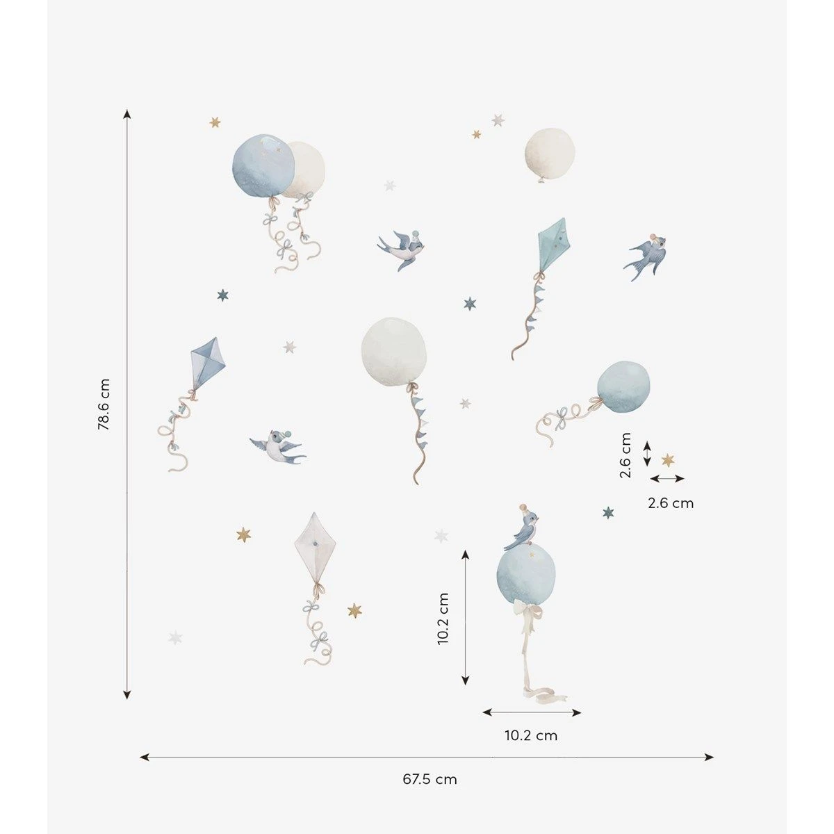 Stickers muraux ballons et cerfs-volants SELENE Couleur bleu LILIPINSO