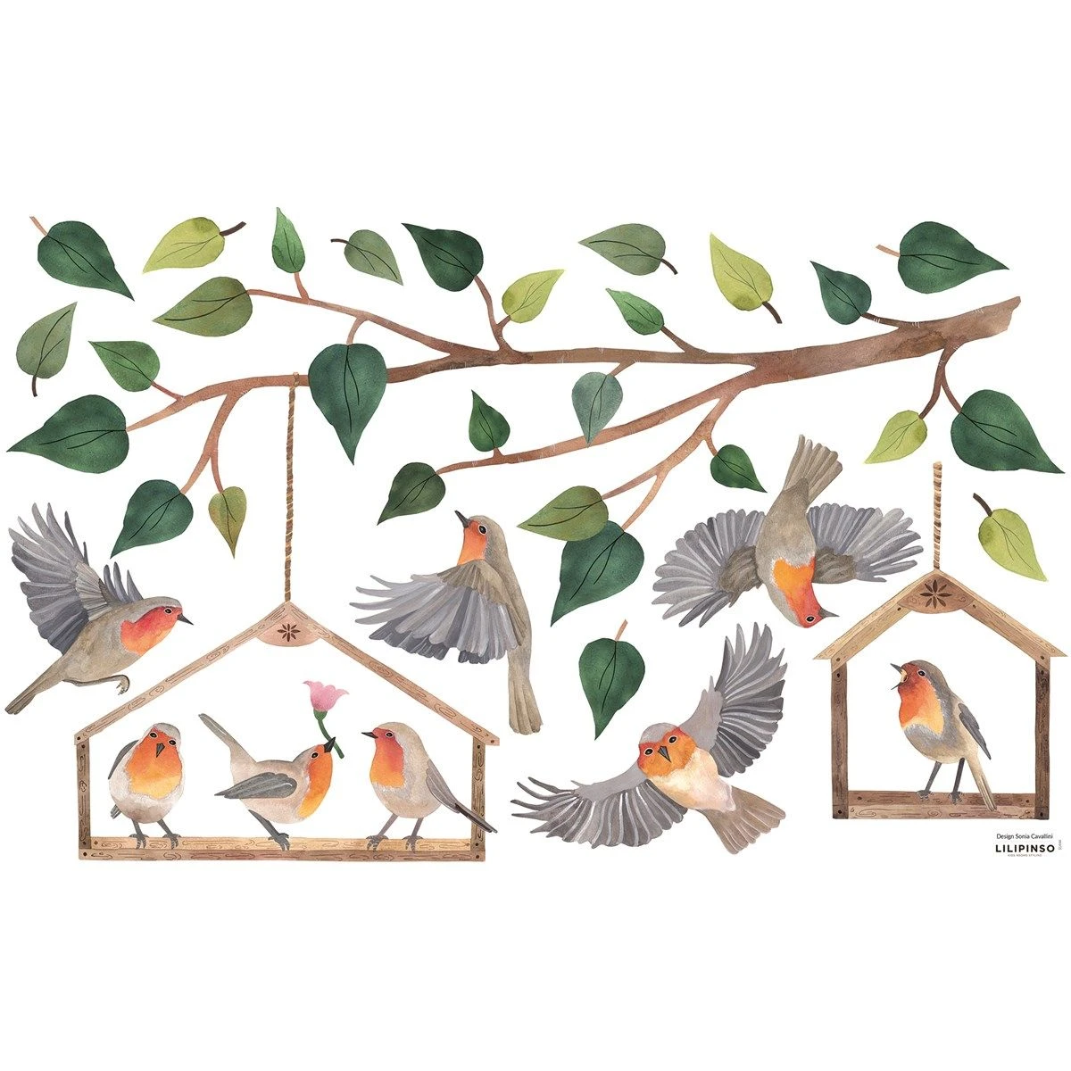 Stickers muraux branches et oiseaux QUEYRAN Couleur vert LILIPINSO