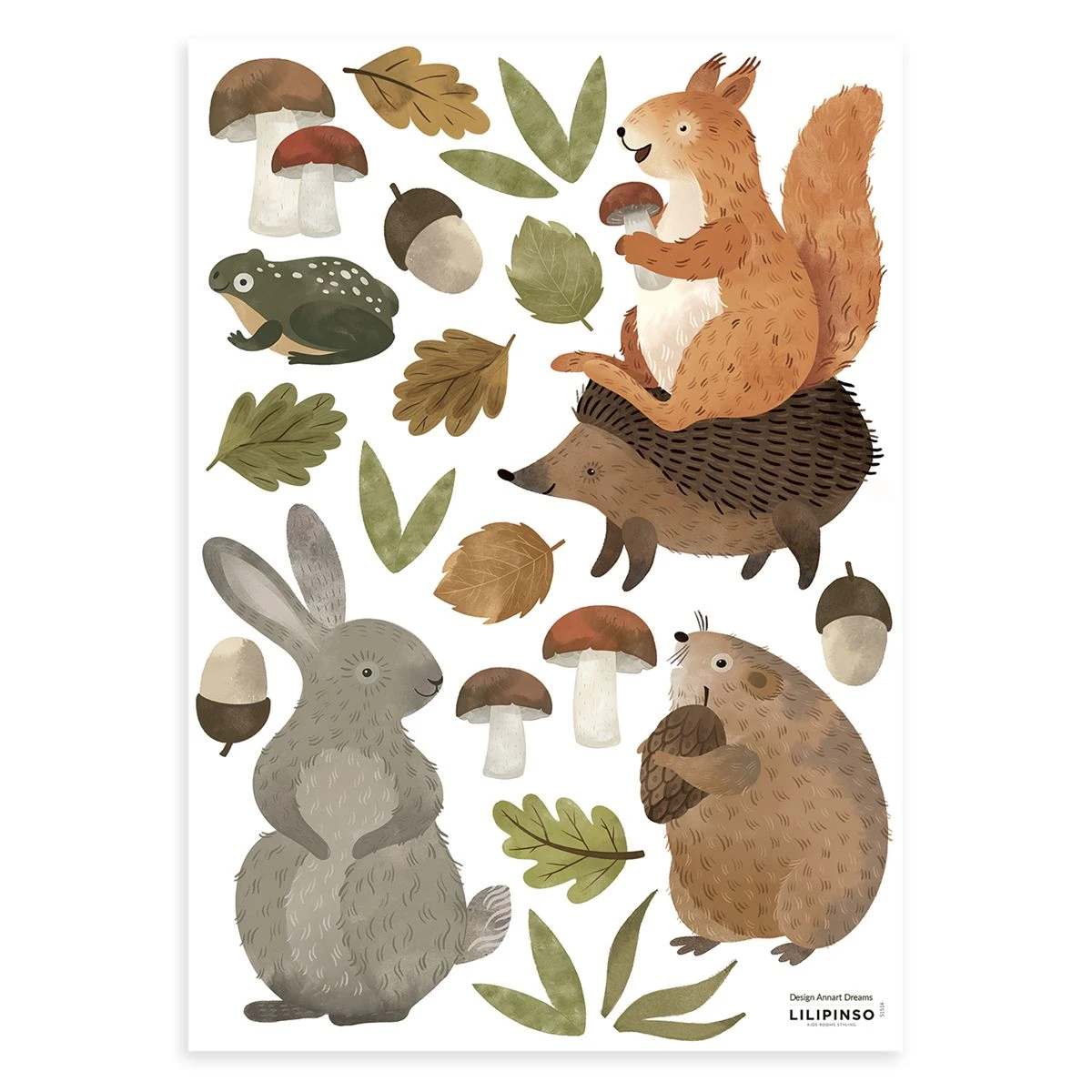 Stickers muraux forêt : lapin hérisson écureuil NORWOOD Couleur multicolore LILIPINSO