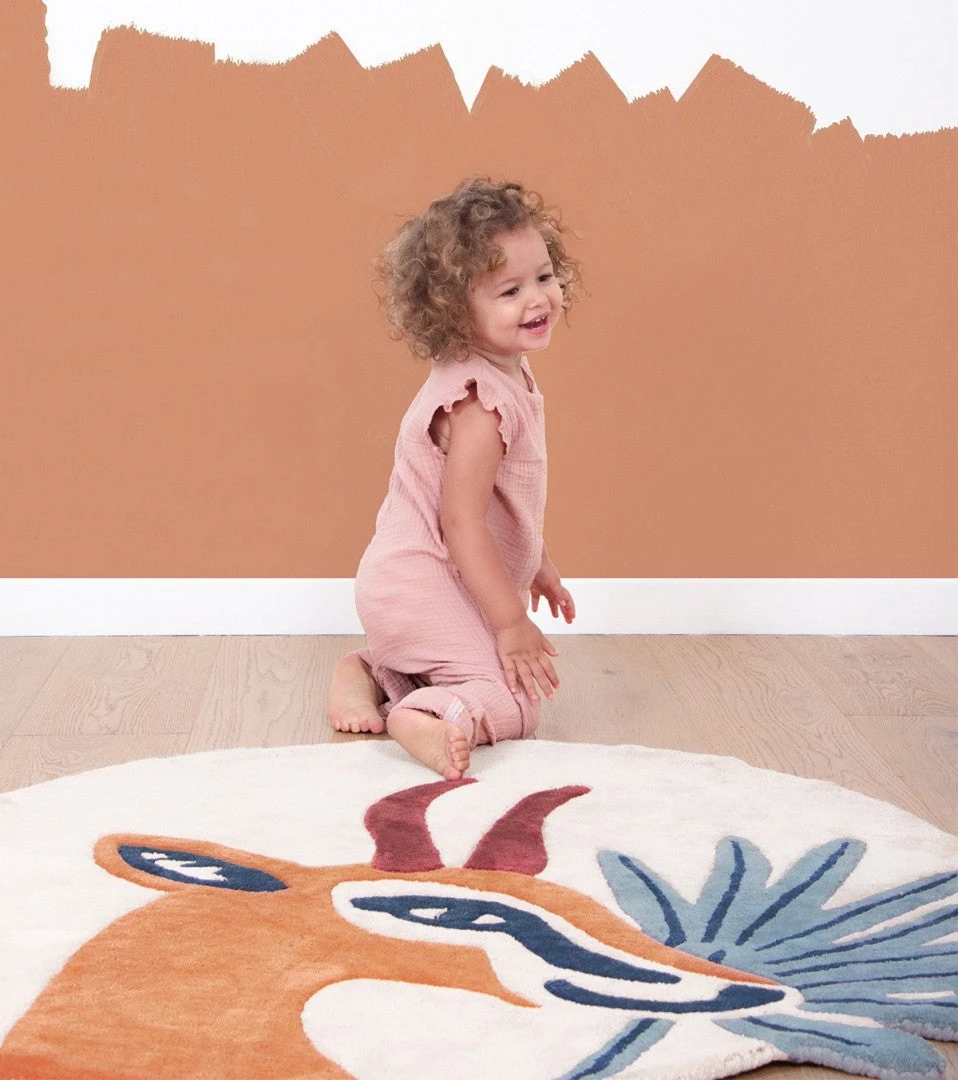 Tapis: Camomille | 100cm diamètre, Gazelle | 100cm diamètre, Rhinocéros | 100cm diamètre, Perroquet | 160x120cm, Enchanted | 150cm diamètre, Terrazzo | 150cm diamètre